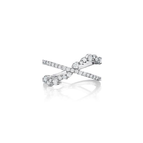 Penny Preville 18k White Gold Stardust Diamond Criss Cross Ring