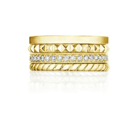 Penny Preville 18k Yellow Gold Starbdust Three Row Diamond Ring